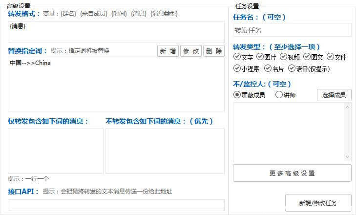 3、灵活的监控设置:用户可以设置仅转发特定成员的消息,或者排除某些成员的消息,以满足不同的监控需求。