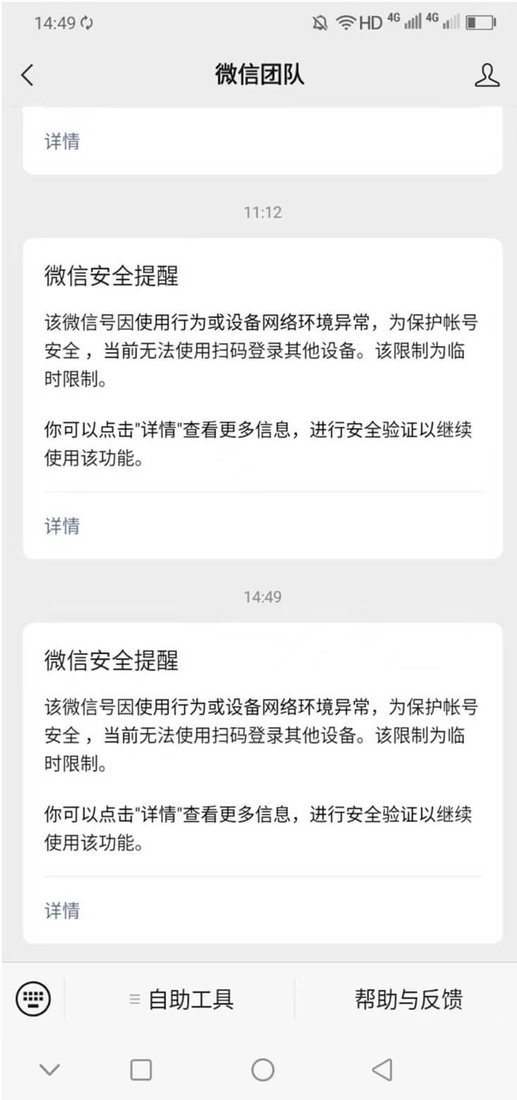 腾讯的提示是“该微信号因使用行为或设备网络环境异常,为保护帐号安全在新设备上登录,本身就是属于一种异常行为。